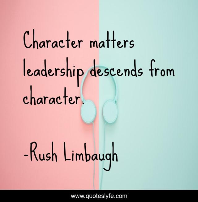 This page presents the quote "Character matters leadership descends from character.". Author of this quote is Rush Limbaugh. This quote is about matters, character,.