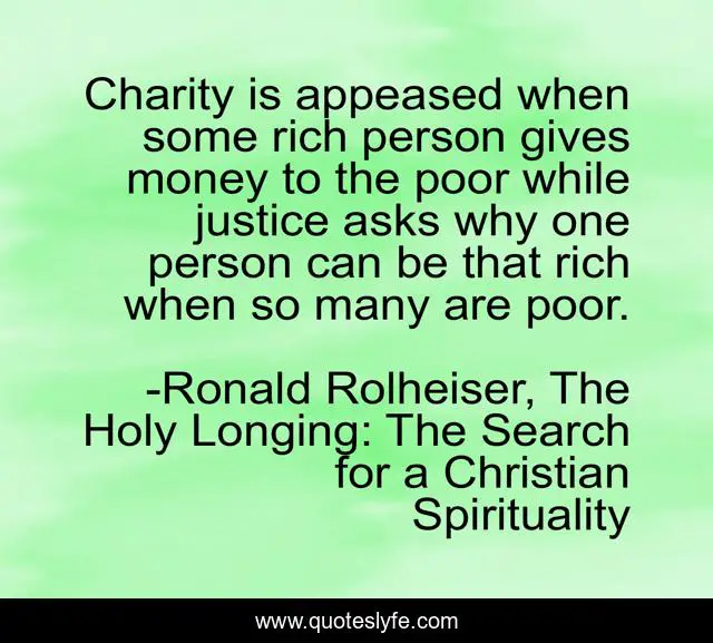 "Ronald Rolheiser, The Holy Longing: The Search for a Christian Spirituality Quotes." Quoteslyfe.com, 2025. Fri. 05 Dec. 2025. <https://www.quoteslyfe.com/quote/Charity-is-appeased-when-some-rich-person-150518>.