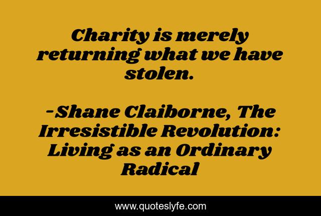"Shane Claiborne, The Irresistible Revolution: Living as an Ordinary Radical Quotes." Quoteslyfe.com, 2025. Sun. 07 Dec. 2025. <https://www.quoteslyfe.com/quote/Charity-is-merely-returning-what-we-have-250391>.