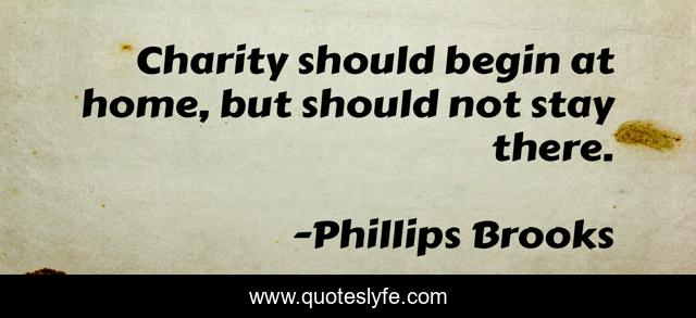 This page presents the quote "Charity should begin at home, but should not stay there.". Author of this quote is Phillips Brooks. This quote is about charity, stay,.