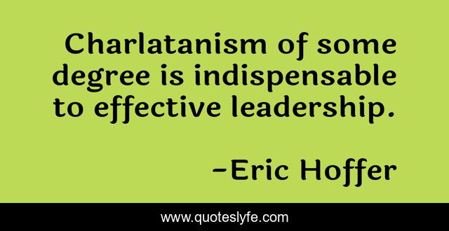This page presents the quote "Charlatanism of some degree is indispensable to effective leadership.". Author of this quote is Eric Hoffer. This quote is about degree, effective,.