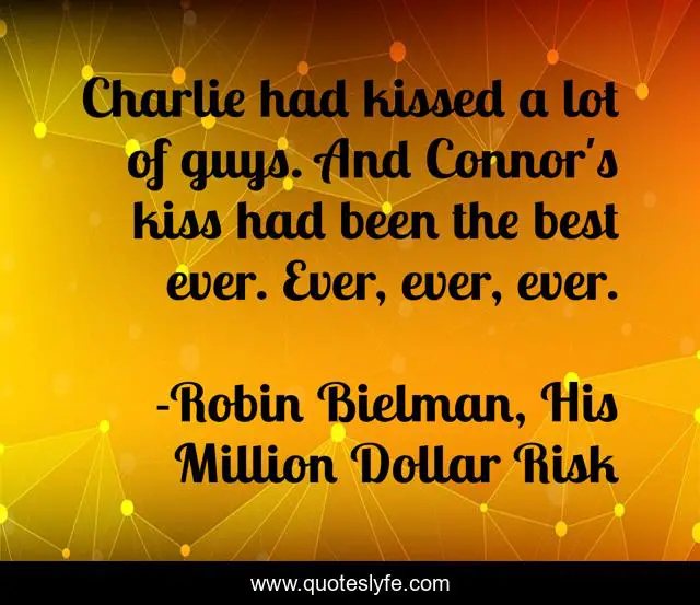 This page presents the quote "Charlie had kissed a lot of guys. And Connor's kiss had been the best ever. Ever, ever, ever.". Author of this quote is Robin Bielman, His Million Dollar Risk. This quote is about conservation, route-66, contemporary-romance,.