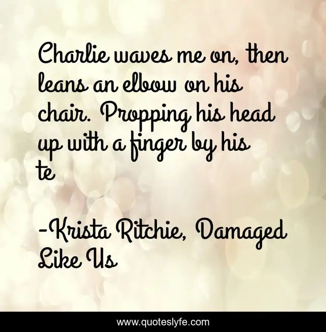 "Krista Ritchie, Damaged Like Us Quotes." Quoteslyfe.com, 2025. Fri. 05 Dec. 2025. <https://www.quoteslyfe.com/quote/Charlie-waves-me-on-then-leans-an-41524>.