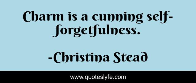 This page presents the quote "Charm is a cunning self-forgetfulness.". Author of this quote is Christina Stead. .