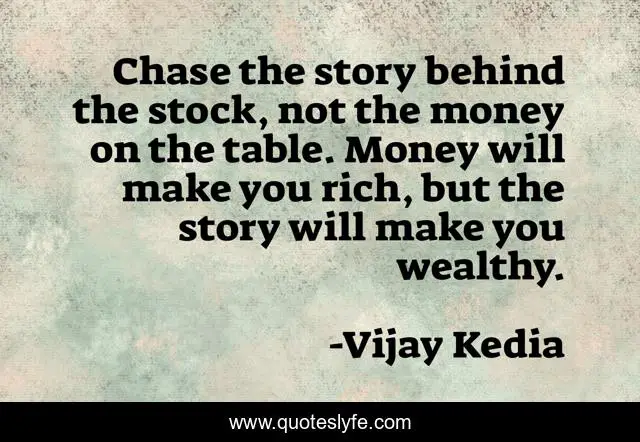 This page presents the quote "Chase the story behind the stock, not the money on the table. Money will make you rich, but the story will make you wealthy.". Author of this quote is Vijay Kedia. This quote is about enthusiasm, stock-market, business, inspirational, business-leaders,.