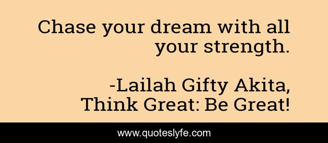 "Lailah Gifty Akita, Think Great: Be Great! Quotes." Quoteslyfe.com, 2025. Fri. 05 Dec. 2025. <https://www.quoteslyfe.com/quote/Chase-your-dream-with-all-your-strength-34666>.