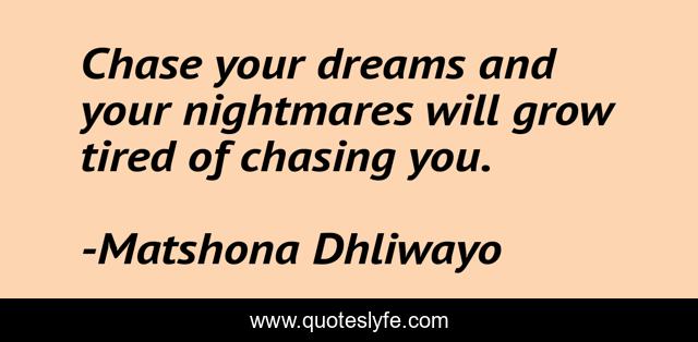 "Matshona Dhliwayo Quotes." Quoteslyfe.com, 2025. Mon. 08 Dec. 2025. <https://www.quoteslyfe.com/quote/Chase-your-dreams-and-your-nightmares-will-83579>.