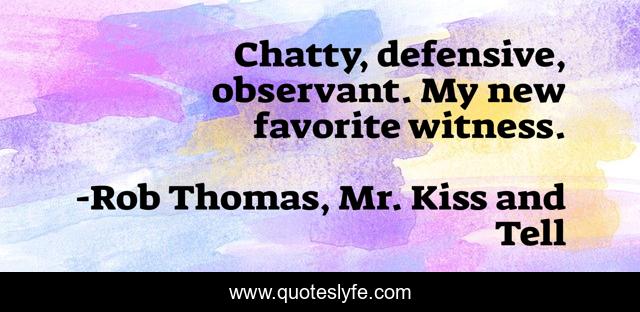 "Rob Thomas, Mr. Kiss and Tell Quotes." Quoteslyfe.com, 2025. Mon. 08 Dec. 2025. <https://www.quoteslyfe.com/quote/Chatty-defensive-observant-My-new-favorite-witness-193489>.