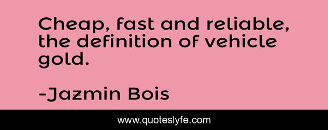 This page presents the quote "Cheap, fast and reliable, the definition of vehicle gold.". Author of this quote is Jazmin Bois. .