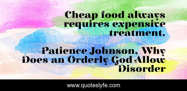 "Patience Johnson, Why Does an Orderly God Allow Disorder Quotes." Quoteslyfe.com, 2025. Tue. 09 Dec. 2025. <https://www.quoteslyfe.com/quote/Cheap-food-always-requires-expensive-treatment-45934>.