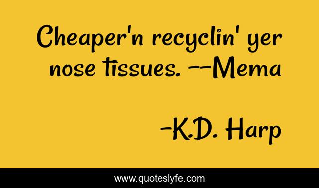 "K.D. Harp Quotes." Quoteslyfe.com, 2025. Fri. 05 Dec. 2025. <https://www.quoteslyfe.com/quote/Cheaper-n-recyclin-yer-nose-tissues-Mema-97200>.