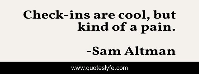 This page presents the quote "Check-ins are cool, but kind of a pain.". Author of this quote is Sam Altman. This quote is about kind, pain,.