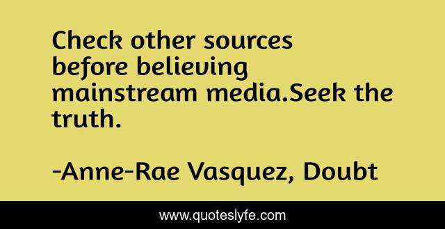 "Anne-Rae Vasquez, Doubt Quotes." Quoteslyfe.com, 2025. Fri. 05 Dec. 2025. <https://www.quoteslyfe.com/quote/Check-other-sources-before-believing-mainstream-media-216250>.