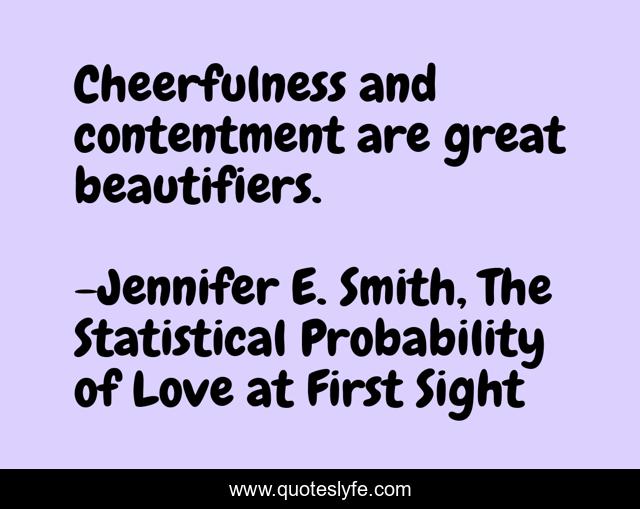 "Jennifer E. Smith, The Statistical Probability of Love at First Sight Quotes." Quoteslyfe.com, 2025. Fri. 05 Dec. 2025. <https://www.quoteslyfe.com/quote/Cheerfulness-and-contentment-are-great-beautifiers-16230>.