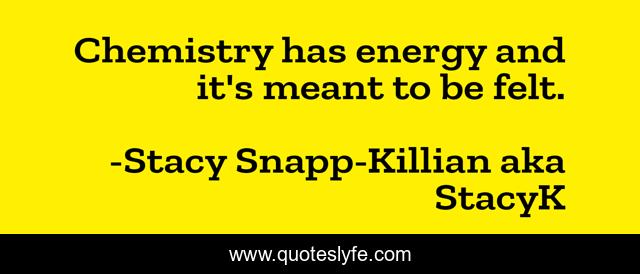 "Stacy Snapp-Killian aka StacyK Quotes." Quoteslyfe.com, 2025. Mon. 08 Dec. 2025. <https://www.quoteslyfe.com/quote/Chemistry-has-energy-and-it-s-meant-77505>.