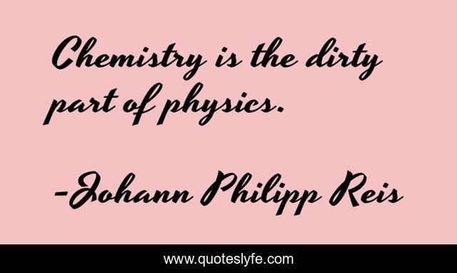 "Johann Philipp Reis Quotes." Quoteslyfe.com, 2025. Fri. 05 Dec. 2025. <https://www.quoteslyfe.com/quote/Chemistry-is-the-dirty-part-of-physics-242029>.