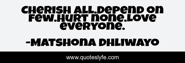 "Matshona Dhliwayo Quotes." Quoteslyfe.com, 2025. Fri. 05 Dec. 2025. <https://www.quoteslyfe.com/quote/Cherish-all-Depend-on-few-Hurt-none-208114>.