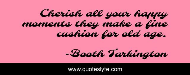 This page presents the quote "Cherish all your happy moments they make a fine cushion for old age.". Author of this quote is Booth Tarkington. .