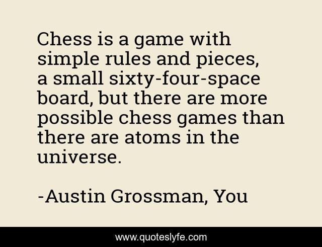"Austin Grossman, You Quotes." Quoteslyfe.com, 2025. Sat. 13 Dec. 2025. <https://www.quoteslyfe.com/quote/Chess-is-a-game-with-simple-rules-241347>.