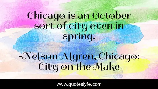 This page presents the quote "Chicago is an October sort of city even in spring.". Author of this quote is Nelson Algren, Chicago: City on the Make. This quote is about spring, october, chicago, city,.
