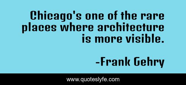This page presents the quote "Chicago's one of the rare places where architecture is more visible.". Author of this quote is Frank Gehry. This quote is about places, chicago,.