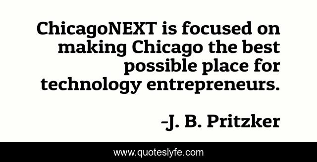 This page presents the quote "ChicagoNEXT is focused on making Chicago the best possible place for technology entrepreneurs.". Author of this quote is J. B. Pritzker. This quote is about place, best, chicago,.