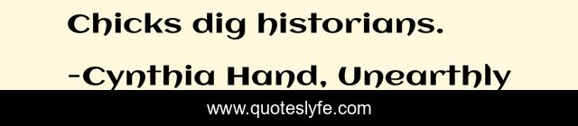 "Cynthia Hand, Unearthly Quotes." Quoteslyfe.com, 2025. Sat. 06 Dec. 2025. <https://www.quoteslyfe.com/quote/Chicks-dig-historians-70766>.