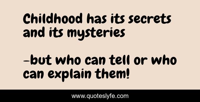 "but who can tell or who can explain them! Quotes." Quoteslyfe.com, 2025. Fri. 05 Dec. 2025. <https://www.quoteslyfe.com/quote/Childhood-has-its-secrets-and-its-mysteries-146630>.