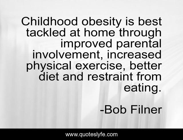This page presents the quote "Childhood obesity is best tackled at home through improved parental involvement, increased physical exercise, better diet and restraint from eating.". Author of this quote is Bob Filner. This quote is about home, childhood, best,.