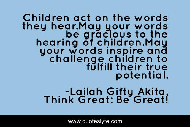 "Lailah Gifty Akita, Think Great: Be Great! Quotes." Quoteslyfe.com, 2025. Tue. 09 Dec. 2025. <https://www.quoteslyfe.com/quote/Children-act-on-the-words-they-hear-99858>.