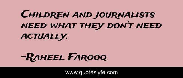 "Raheel Farooq Quotes." Quoteslyfe.com, 2025. Sat. 06 Dec. 2025. <https://www.quoteslyfe.com/quote/Children-and-journalists-need-what-they-don-100171>.