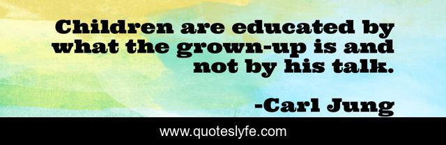 This page presents the quote "Children are educated by what the grown-up is and not by his talk.". Author of this quote is Carl Jung. This quote is about educated, children, talk,.