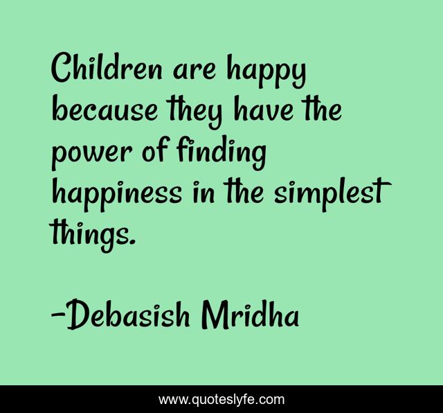 This page presents the quote "Children are happy because they have the power of finding happiness in the simplest things.". Author of this quote is Debasish Mridha. This quote is about happy, life, love, knowledge, simple, intelligence, philosophy, wisdom, inspirational,.