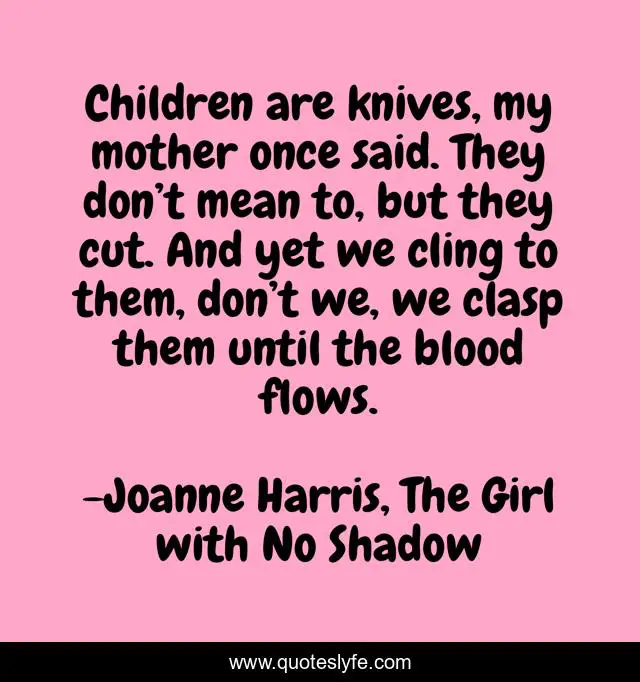 "Joanne Harris, The Girl with No Shadow Quotes." Quoteslyfe.com, 2025. Tue. 09 Dec. 2025. <https://www.quoteslyfe.com/quote/Children-are-knives-my-mother-once-said-99180>.