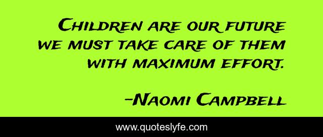 "Naomi Campbell Quotes." Quoteslyfe.com, 2025. Mon. 08 Dec. 2025. <https://www.quoteslyfe.com/quote/Children-are-our-future-we-must-take-99294>.