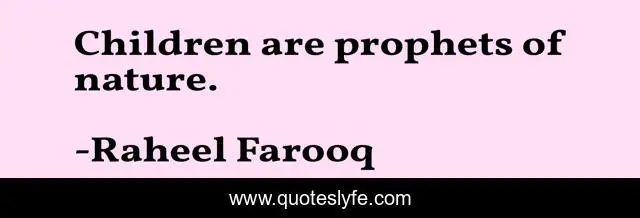 This page presents the quote "Children are prophets of nature.". Author of this quote is Raheel Farooq. This quote is about prophets, innocence, children, nature,.