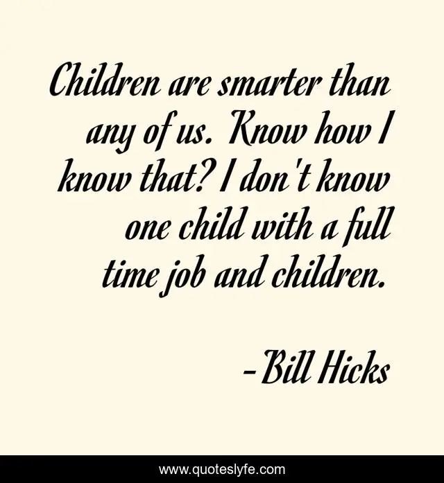 "Bill Hicks Quotes." Quoteslyfe.com, 2025. Mon. 08 Dec. 2025. <https://www.quoteslyfe.com/quote/Children-are-smarter-than-any-of-us-316808>.