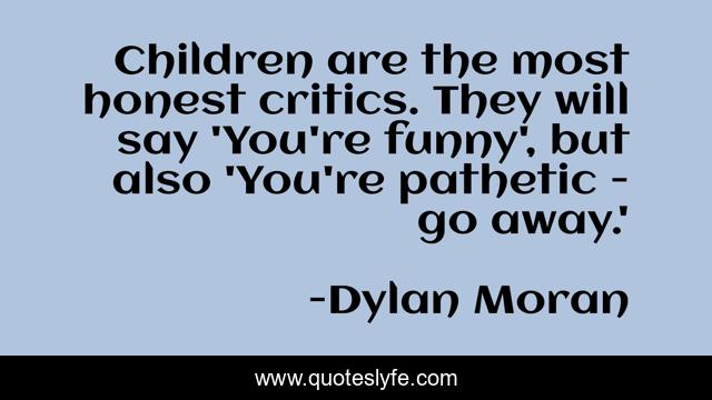 This page presents the quote "Children are the most honest critics. They will say 'You're funny', but also 'You're pathetic - go away.'". Author of this quote is Dylan Moran. This quote is about children, honest,.