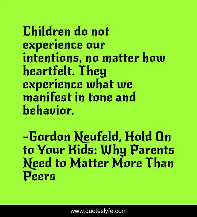 "Gordon Neufeld, Hold On to Your Kids: Why Parents Need to Matter More Than Peers Quotes." Quoteslyfe.com, 2025. Sat. 06 Dec. 2025. <https://www.quoteslyfe.com/quote/Children-do-not-experience-our-intentions-no-167262>.