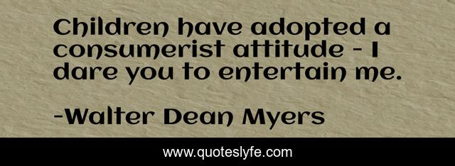 This page presents the quote "Children have adopted a consumerist attitude - I dare you to entertain me.". Author of this quote is Walter Dean Myers. This quote is about me, children,.