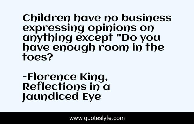 "Florence King, Reflections in a Jaundiced Eye Quotes." Quoteslyfe.com, 2025. Mon. 08 Dec. 2025. <https://www.quoteslyfe.com/quote/Children-have-no-business-expressing-opinions-on-100269>.