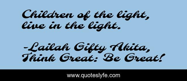 "Lailah Gifty Akita, Think Great: Be Great! Quotes." Quoteslyfe.com, 2025. Sun. 07 Dec. 2025. <https://www.quoteslyfe.com/quote/Children-of-the-light-live-in-the-98858>.