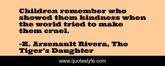 "K. Arsenault Rivera, The Tiger’s Daughter Quotes." Quoteslyfe.com, 2025. Mon. 08 Dec. 2025. <https://www.quoteslyfe.com/quote/Children-remember-who-showed-them-kindness-when-190855>.