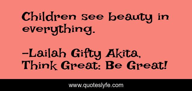 "Lailah Gifty Akita, Think Great: Be Great! Quotes." Quoteslyfe.com, 2025. Mon. 08 Dec. 2025. <https://www.quoteslyfe.com/quote/Children-see-beauty-in-everything-212077>.