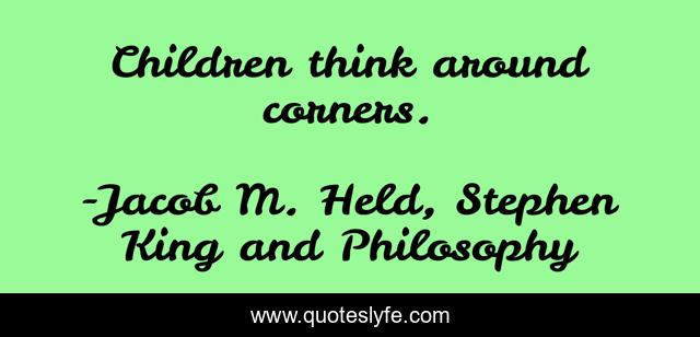 "Jacob M. Held, Stephen King and Philosophy Quotes." Quoteslyfe.com, 2025. Sat. 06 Dec. 2025. <https://www.quoteslyfe.com/quote/Children-think-around-corners-99632>.