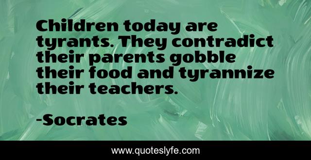 This page presents the quote "Children today are tyrants. They contradict their parents gobble their food and tyrannize their teachers.". Author of this quote is Socrates. .