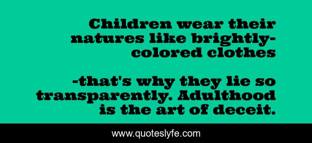 "that's why they lie so transparently. Adulthood is the art of deceit. Quotes." Quoteslyfe.com, 2025. Tue. 09 Dec. 2025. <https://www.quoteslyfe.com/quote/Children-wear-their-natures-like-brightly-colored-191040>.
