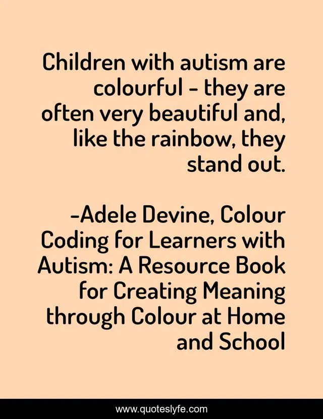 "Adele Devine, Colour Coding for Learners with Autism: A Resource Book for Creating Meaning through Colour at Home and School Quotes." Quoteslyfe.com, 2025. Fri. 05 Dec. 2025. <https://www.quoteslyfe.com/quote/Children-with-autism-are-colourful-they-are-100023>.