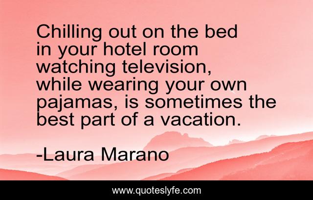 This page presents the quote "Chilling out on the bed in your hotel room watching television, while wearing your own pajamas, is sometimes the best part of a vacation.". Author of this quote is Laura Marano. This quote is about television, hotel, vacation,.