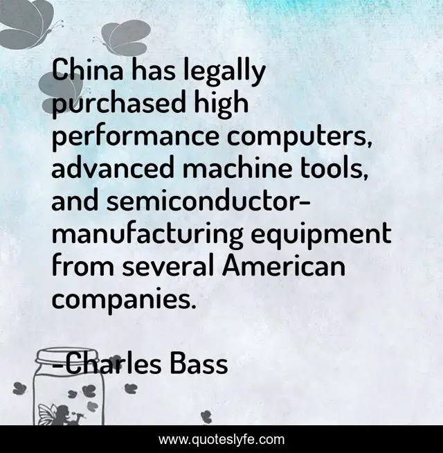 This page presents the quote "China has legally purchased high performance computers, advanced machine tools, and semiconductor-manufacturing equipment from several American companies.". Author of this quote is Charles Bass. This quote is about performance, american, tools,.